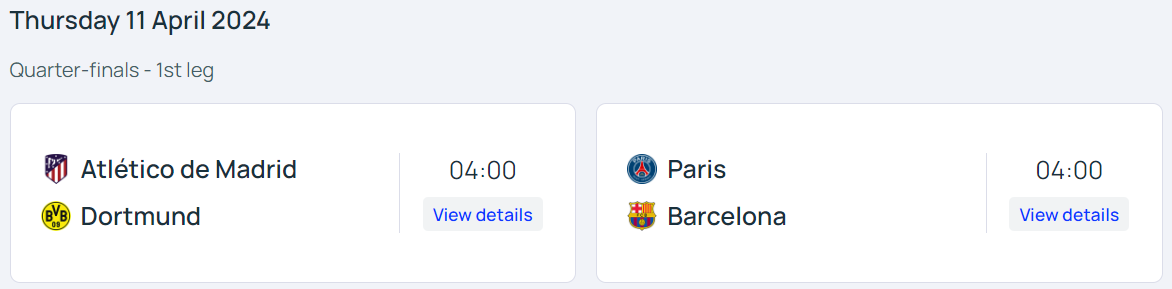 챔피언스리그 8강 일정이 4월 10일 부터 시작될 예정입니다.
